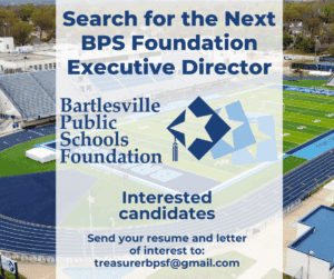The Bartlesville Public Schools Foundation (BPSF) Board of Directors recently announced that the organization is launching an immediate search for its next executive director. Blair Ellis, who has served as the Foundation’s full-time executive director for almost nine years, will be stepping away from her role effective January 30, 2026 to take on a role with ConocoPhillips in Bartlesville.